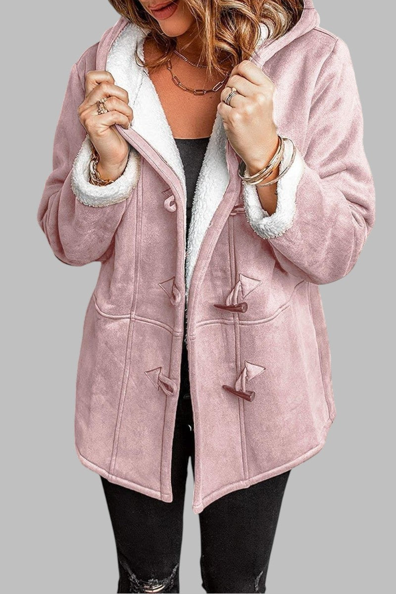 Amelia Płaszcz Kożuszek Różowy Zamsz z Kapturem