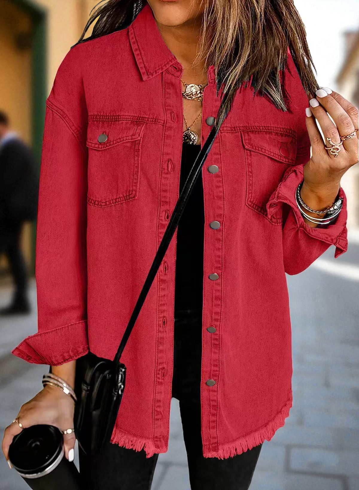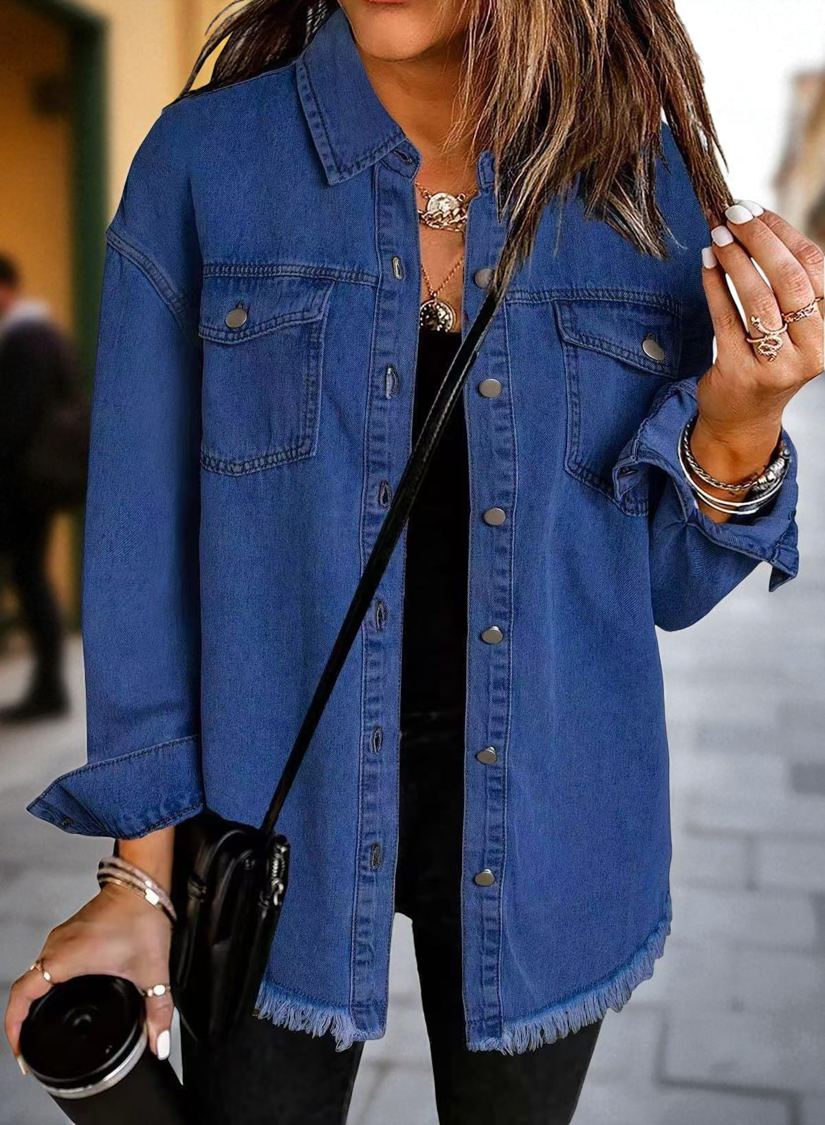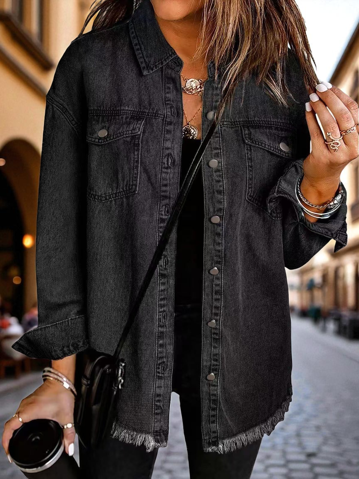● Surowe wykończenie: Postrzępiony dół to modowy akcent, który przyciąga wzrok.